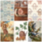 ...a few images from our mood board: clockwise from top left, CFA Voysey's Apothecary's Garden | HappyLabToys | 1930s basket quilt (Pinterest) CF Tunnicliffe for Ladybird Books | raahatkaduji.com | Jessie Willcox Smith